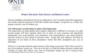 With case studies, this tool includes lessons learned and best practices for establishing effective constituency outreach offices while serving as an elected official. It was published by the National Democratic Institute (NDI).